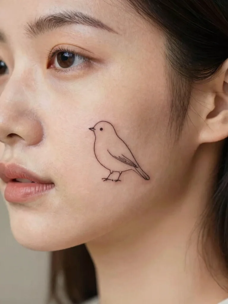 Fun fact: 3 tiny animal portraits in minimalist line art often read as classy, not cluttered. Small face tattoos with simple outlines are easier to heal and age better, staying clear and chic for years. Embrace a single-line cat or bird silhouette to showcase playful charm without crowding your look.