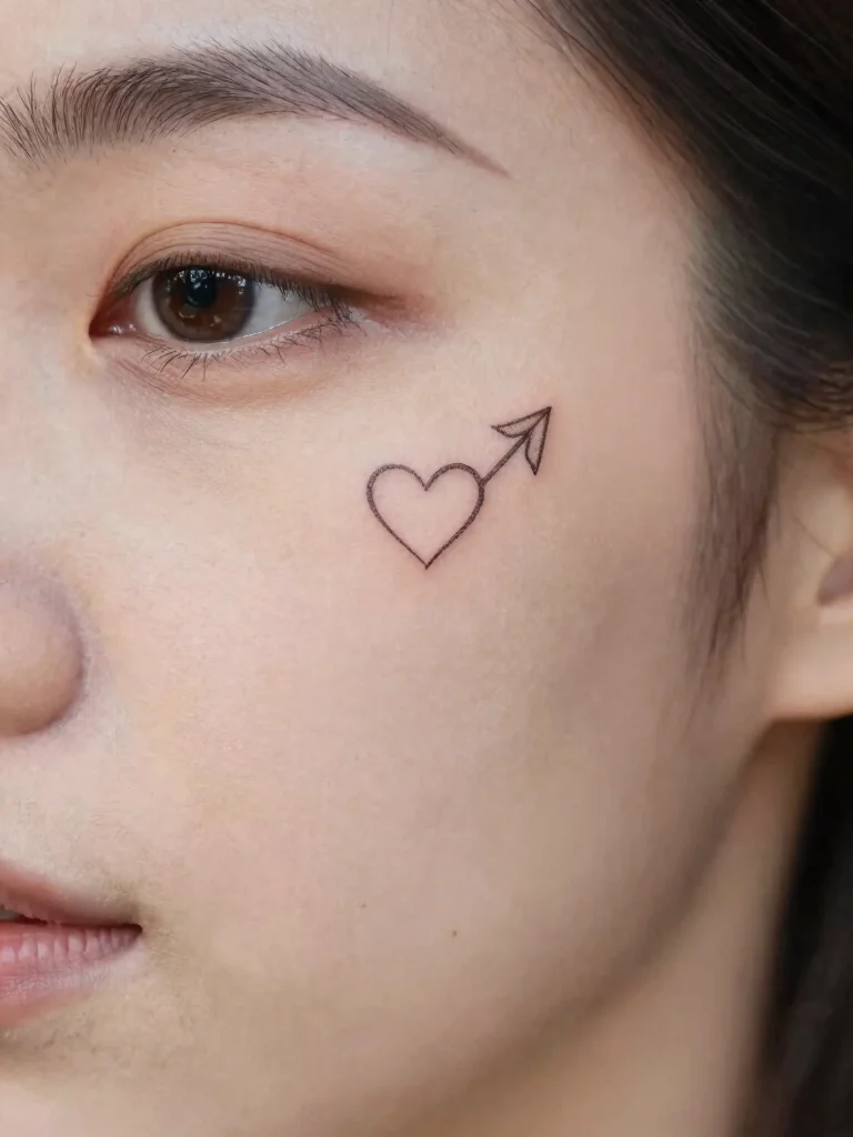 A small heart near your eye or an arrow along your cheek can represent love, direction, or personal growth.