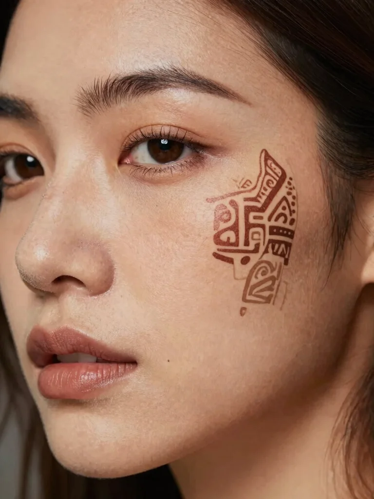 Small face tattoos featuring traditional symbols can celebrate your roots while enhancing your appearance.