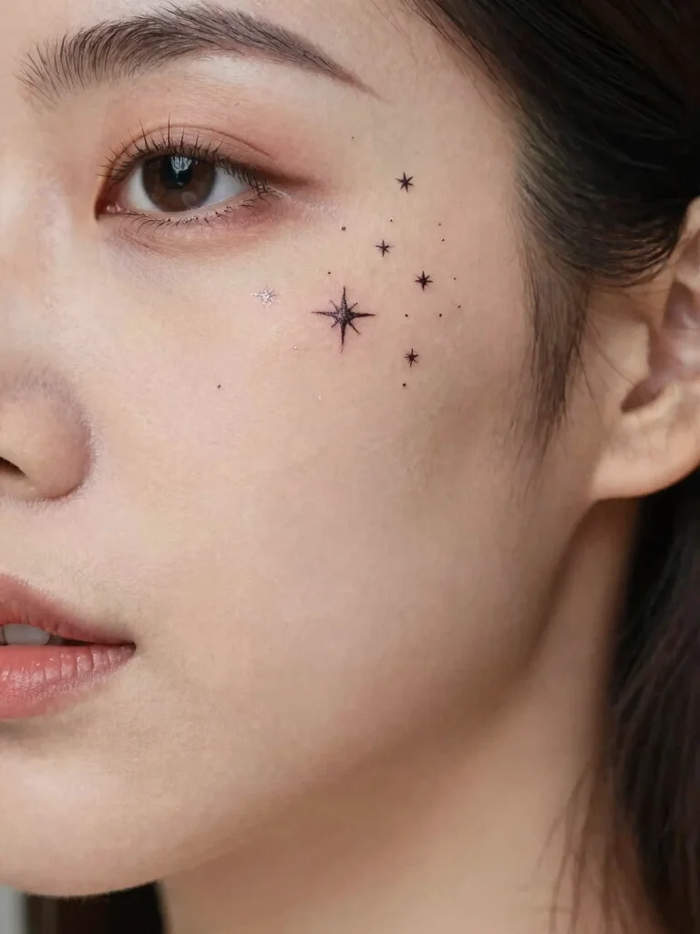 Fun fact: tiny star tattoos under 4 mm can read as delicate specks of light, and many fans of small face tattoos say they heal quickly and stay crisp with simple outlines and dot fills. Cluster a few along your cheek or brow to echo a night sky.