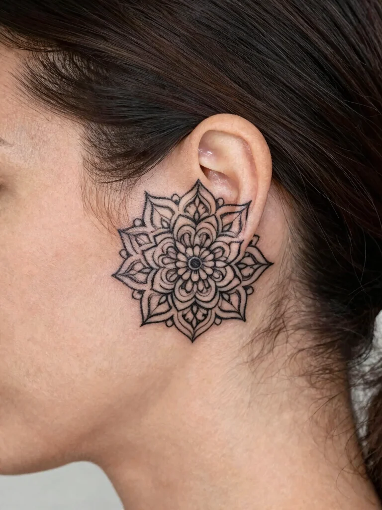 Fun fact: minimalist mandalas shine in tiny spaces—about 8 in 10 people with small face tattoos say delicate lines create balance and personal meaning. For best impact, place a single circle near the temple as a subtle, calming focal point.