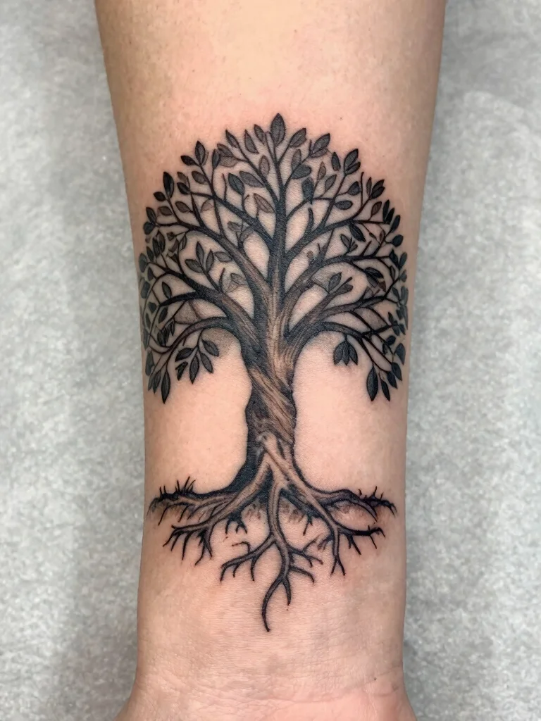 Explore how to express the tree of life through various designs, whether with intricate branches or a minimalist approach. This tattoo serves as a meaningful reminder of your journey and the bonds that shape you.