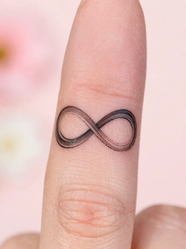 Choosing the infinity symbol for your finger tattoo is a beautiful way to express endless love and possibilities. This elegant design often resonates with those who believe in limitless dreams and deep connections. Typically placed on the side of the finger, it can stand alone or complement other tattoos, symbolizing unity and continuity in life.