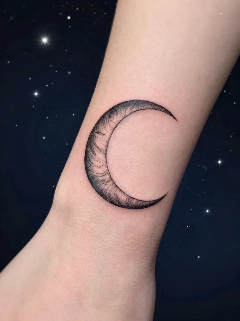 Think about enhancing your crescent moon tattoo with stars or floral accents for a personal touch. This design not only looks stunning but also serves as a reminder of your dreams and inner guidance.