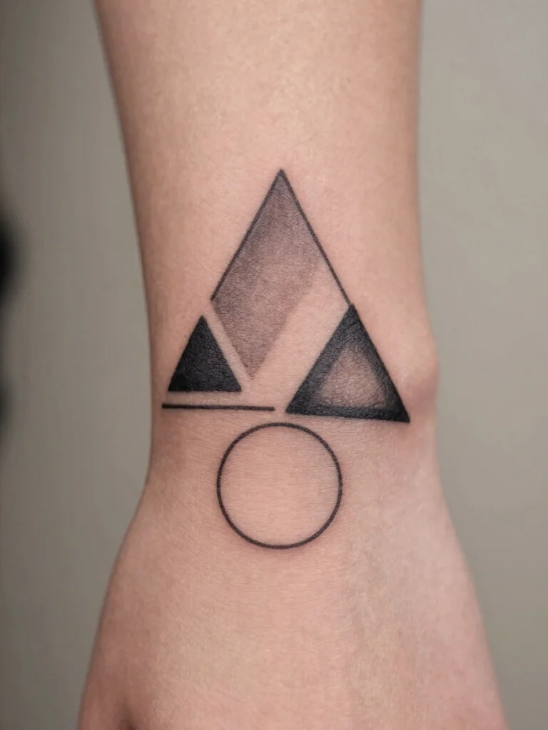 Geometric tattoos introduce a modern and minimalist flair, focusing on clean lines and symmetry. Small shapes like triangles and circles can be inked individually or combined to create a stunning visual. This design appeals to art lovers who appreciate structured beauty while making a subtle statement.