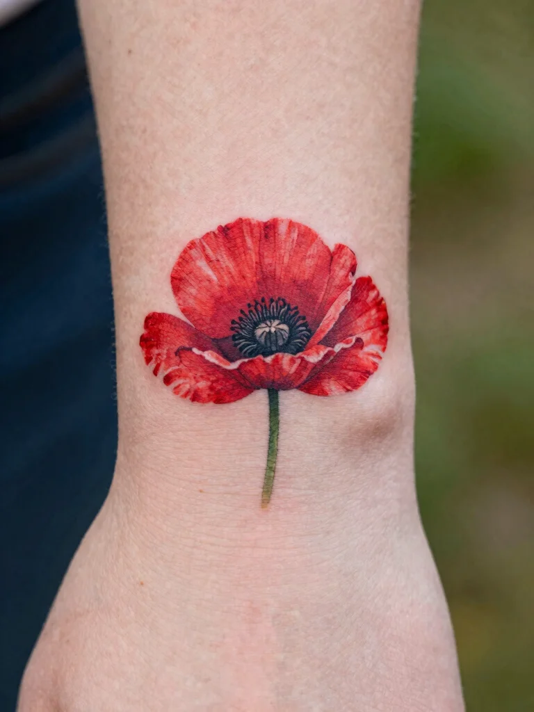 When choosing your poppy design, think about its symbolic meaning. You could go for a minimalist outline for a modern twist or fill it with bright colors for a traditional feel. Placing it in a visible location can transform it into a conversation starter.