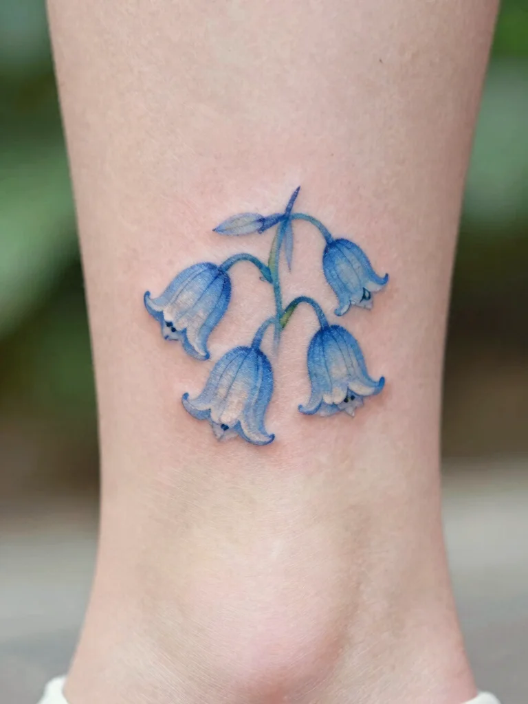 The soft bluebell tattoo captures the essence of gratitude and innocence, making it a delightful addition to any tattoo collection.