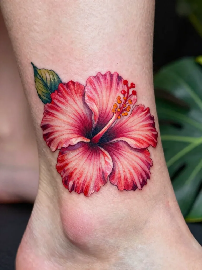 Overall, the tiny hibiscus tattoo beautifully captures femininity and tropical beauty, making it a captivating addition to any tattoo lover’s collection.