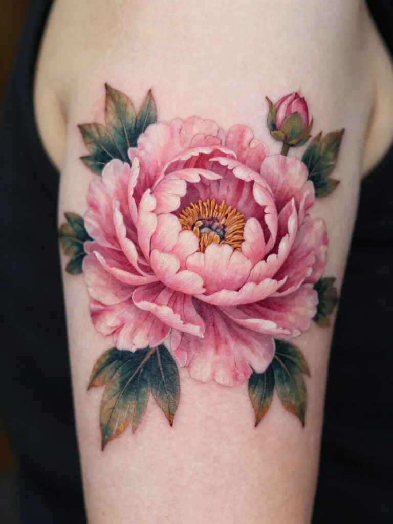 The graceful peony tattoo encapsulates elegance, making it a timeless choice for those who love floral ink art.