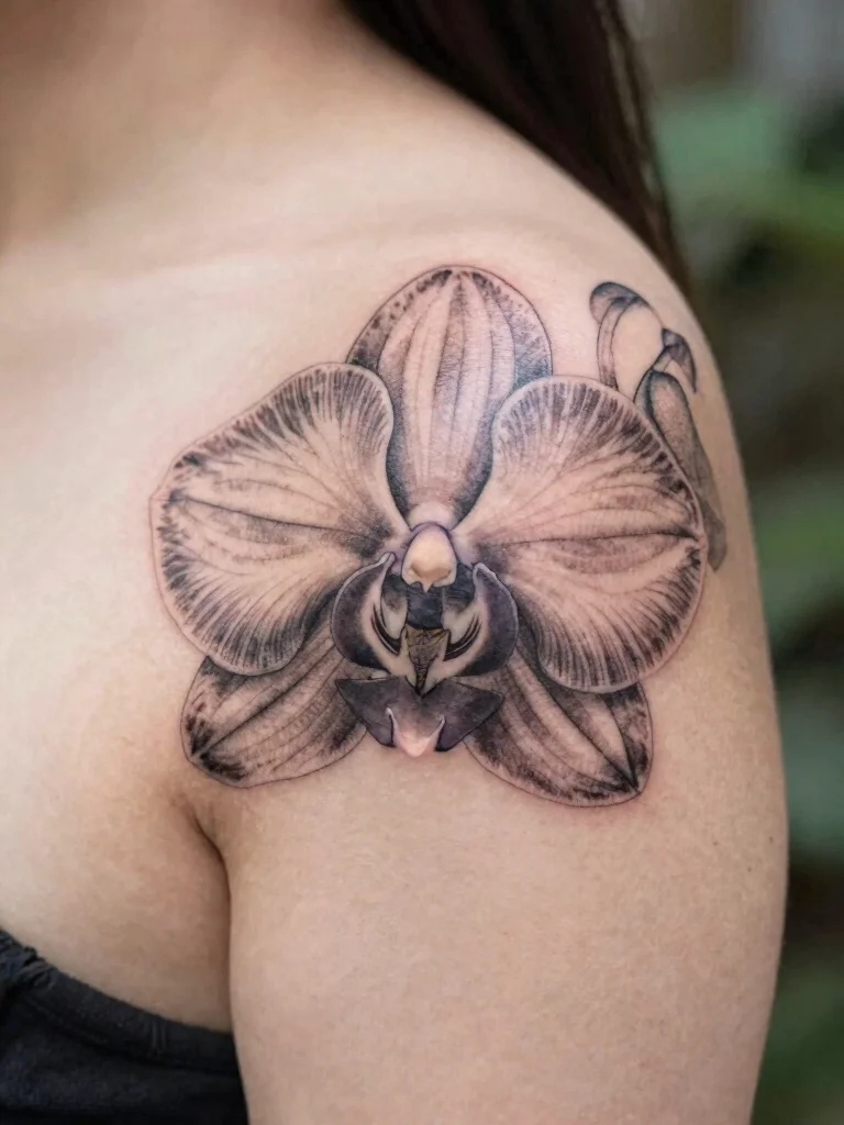 The elegant orchid tattoo is a sophisticated choice that combines charm with deep symbolism, making it a treasured addition to any tattoo collection.