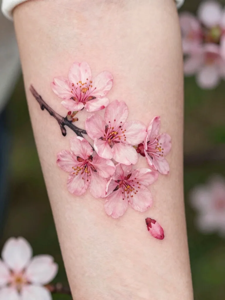 Consider the cultural significance of cherry blossoms when choosing your design. You can opt for a single bloom or a small branch for a more comprehensive piece. Soft pink and white hues can bring this tattoo to life, perfectly capturing the essence of spring.