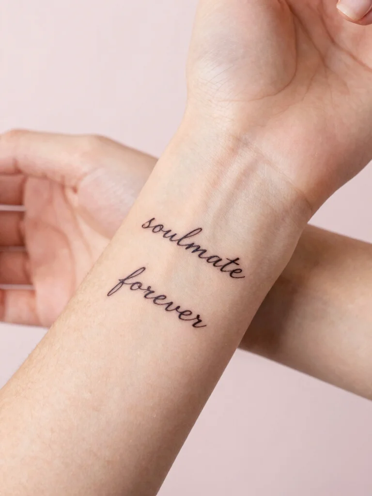 Looking for a deeply personal tattoo? A simple script tattoo featuring a word or phrase can beautifully capture your friendship! Choose words like ‘forever’ or ‘soulmate’ that resonate with your bond.