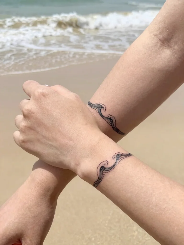 Tiny wave tattoos remind you of the fluid nature of friendship and life’s journey.