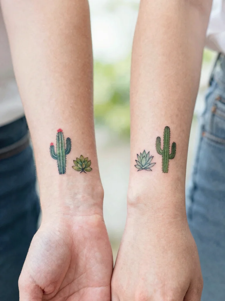 For nature enthusiasts, miniature plant tattoos offer a sweet way to express your shared love for the earth. These designs can include tiny cacti, succulents, or delicate flowers, all inked with care.