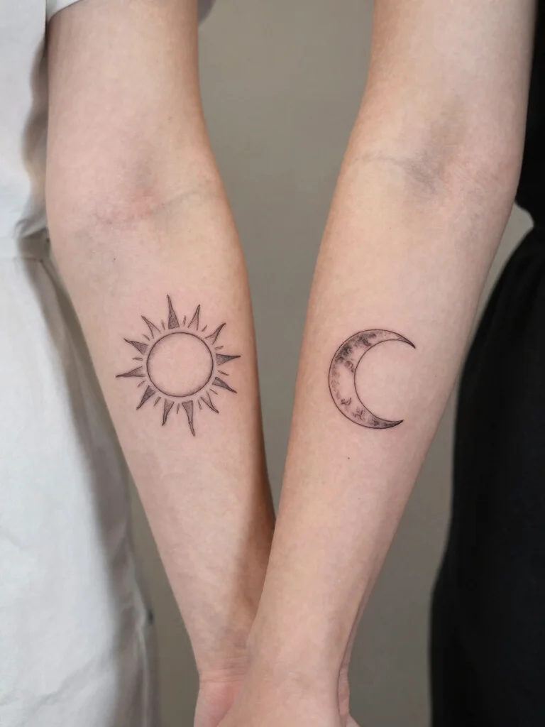 Inking them on your forearms or shoulders allows for a personal touch, symbolizing that you are each other’s guiding stars in life. The designs can also be customized to include significant dates, enriching the meaning behind your tattoos.