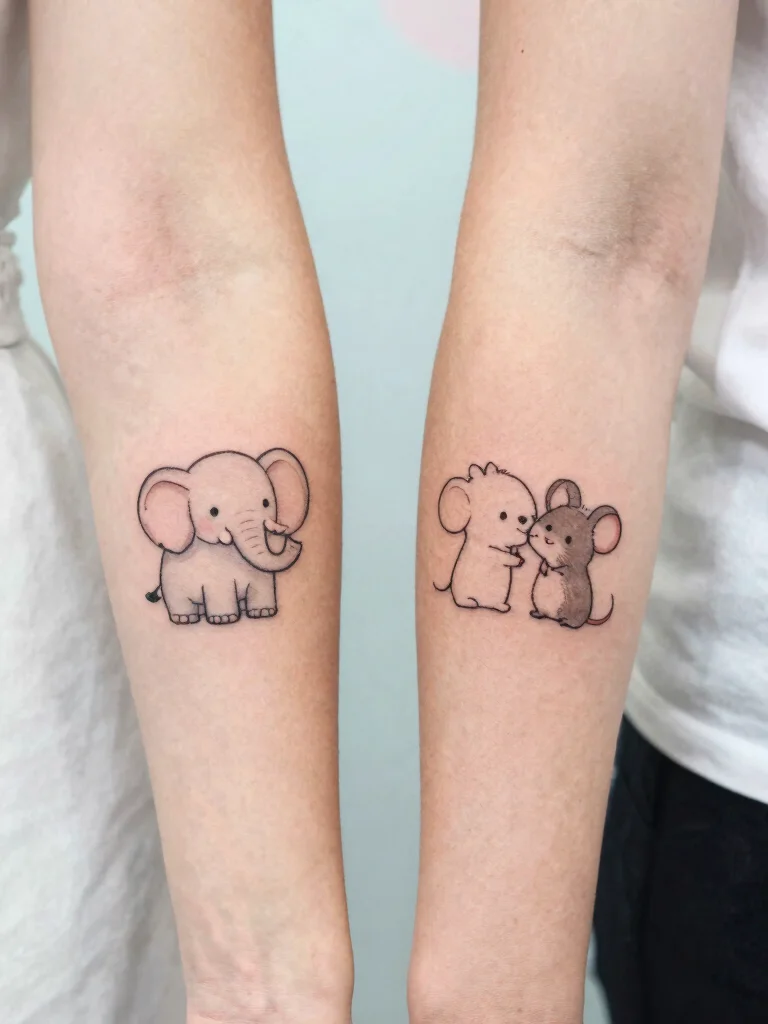 Cute animal pair tattoos reflect the joy in your relationship, serving as a whimsical reminder of your special connection.