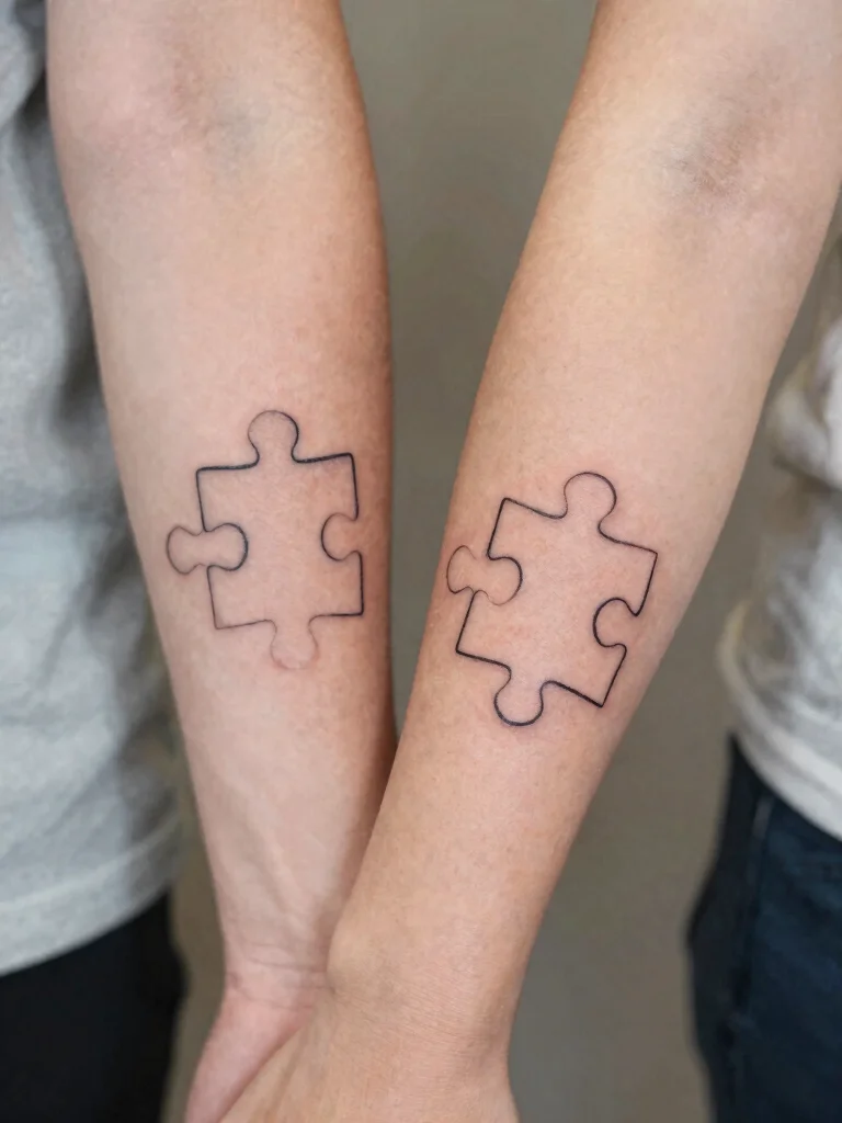 These tattoos come in various styles, from minimalist outlines to more intricate designs. They can be placed on forearms, ankles, or any spot that feels right for you. The puzzle pieces symbolize the beauty of your lives fitting together, despite any challenges faced.