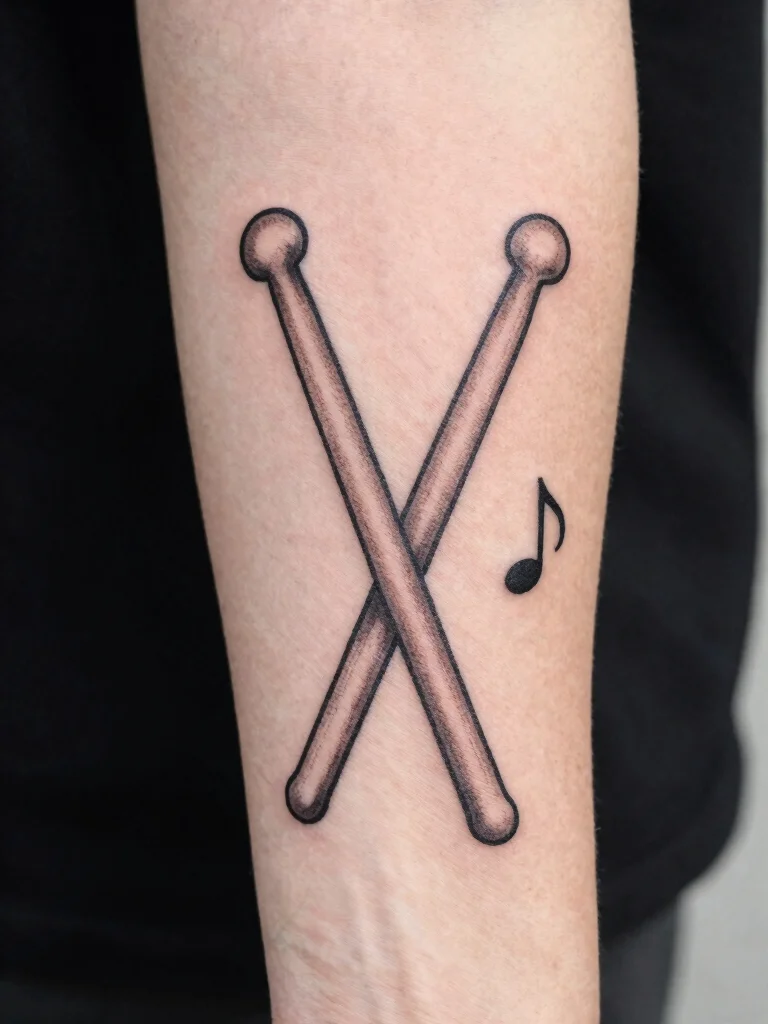 The energetic design can be kept simple yet effective, making it a fun addition for any music enthusiast. You can choose to keep it minimalistic, focusing on the outlines of the drumsticks, and opt for classic black or a splash of color to add excitement.