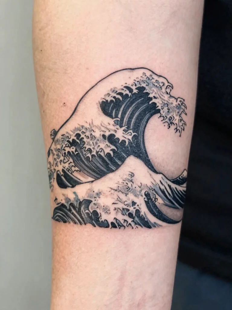 The crescendo wave symbolizes the gradual build-up in music, representing growth and evolution through sound. This tattoo is perfect for those who appreciate the journey music takes. Ideal for placement along your arm or side, it can be interpreted in various ways, illustrating how music transforms and develops.