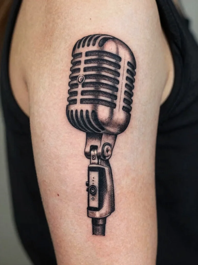 Consider placing this tattoo on your wrist or upper arm for a stylish statement. With fine line work, you can enhance its vintage feel, and opting for classic black or metallic shades can mimic the look of an actual microphone. This tattoo signifies your love for singing and performing, making it a great conversation starter.