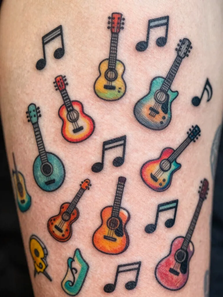 Whether you’re a musician or a dedicated music lover, these tattoos are not just body art; they’re a celebration of the soundtracks that accompany our lives. If one of these designs resonates with you, consider adding it to your collection as a tribute to the tunes that move you.