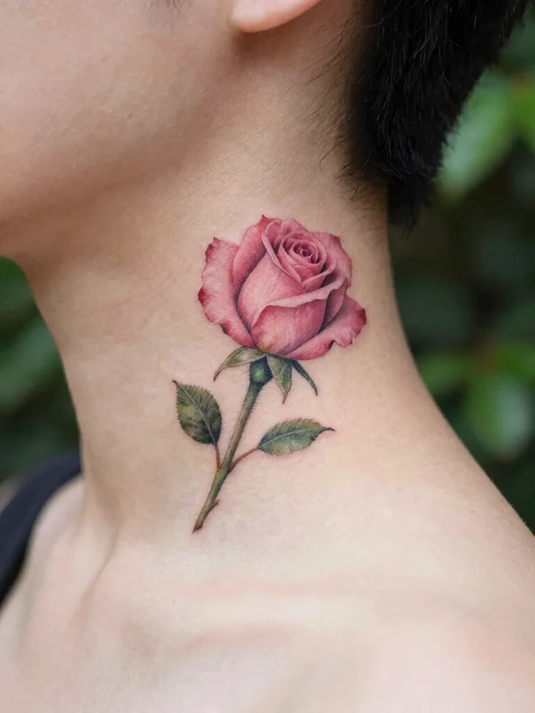 If you’re looking for a tattoo that embodies beauty and femininity, a tiny rosebud on your neck could be the perfect choice. This lovely floral design represents love and new beginnings, making it a favorite among those who appreciate delicate art. Whether you prefer it in minimalist black or vibrant colors, the rosebud can be customized to your liking, allowing you to express your unique style.