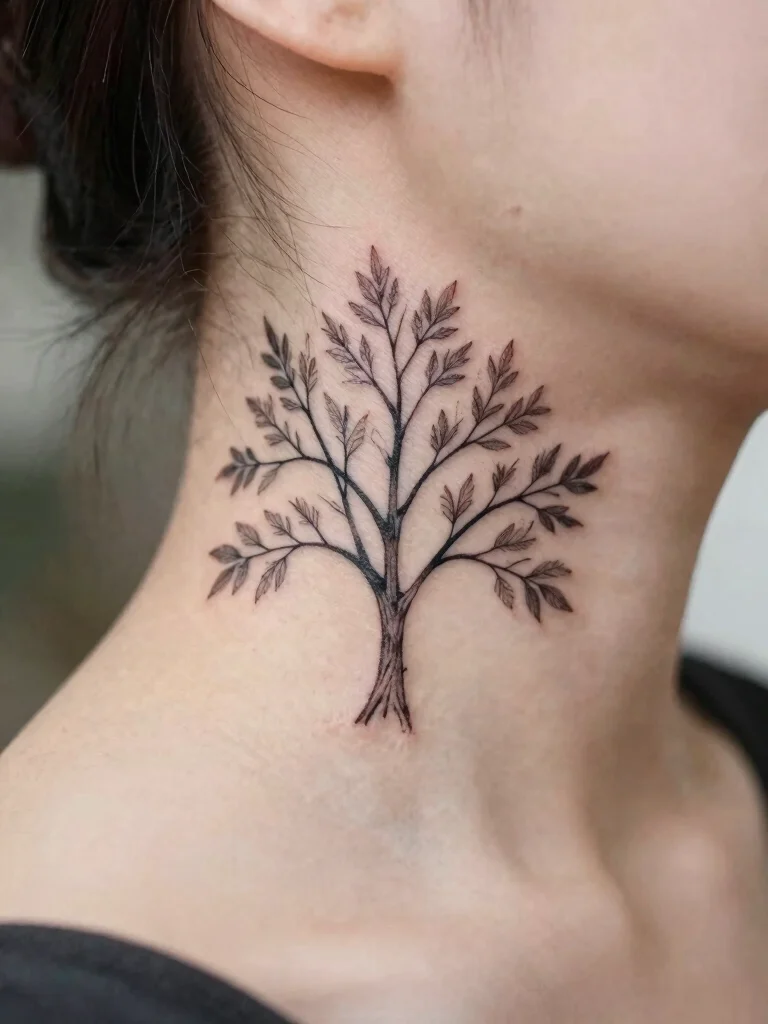 A minimalist tree on your neck is a daily reminder: growth, strength, and roots you can carry with you. Small neck tattoos like for the minimalist tree make a bold, subtle statement about family and nature—beautiful, personal, and endlessly adaptable.