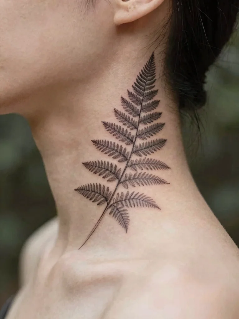 Small neck tattoos don’t shout; they whisper style. A minimalist fern tucked behind the ear or along the neck grows on you—easy to hide, easy to show, and perfect for nature lovers.