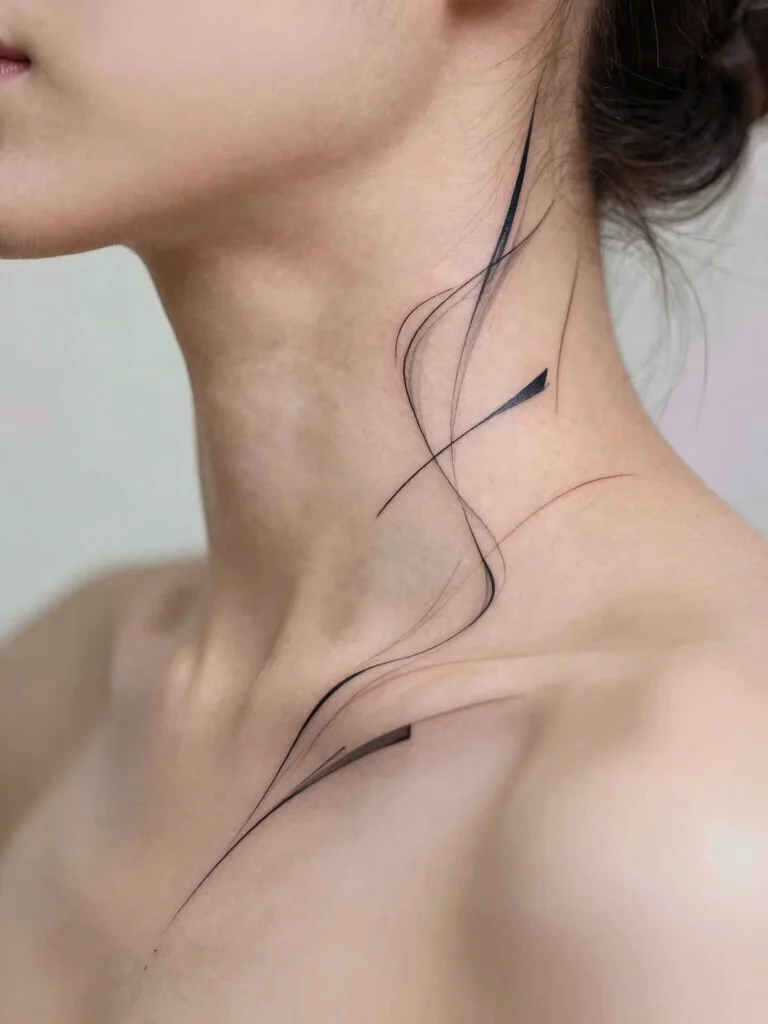 Abstract line art on the neck is the quiet rebel of small neck tattoos—bold shapes that whisper, not shout. Start with a simple geometric or flowing line, and let personal meaning grow over time. Minimalist, versatile, and instantly Instagram-ready for any beauty fan.