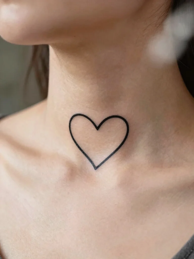 A simple heart tattoo is a classic representation of love and passion. This timeless design can be created in various sizes, making it perfect for a small neck tattoo. The heart symbolizes deep emotions, often representing love for oneself and others.