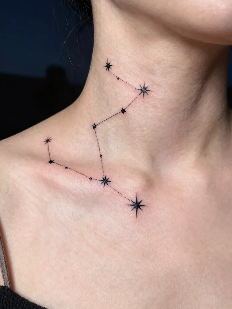A star constellation tattoo brings the magic of the night sky to your neck, connecting you to the cosmos. You can customize this design to reflect constellations that hold personal significance—like your zodiac sign or a cherished star cluster.