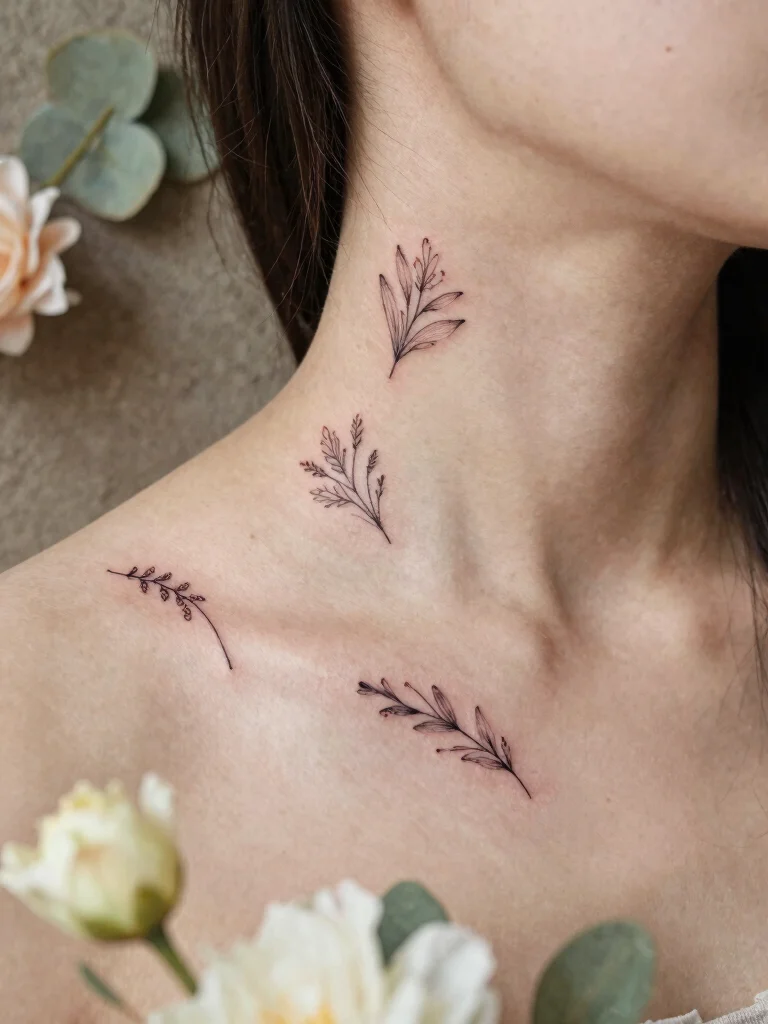 Popular spots include behind the ear, along the side of the neck, or along the collarbone edge for minimalistic neck tattoos that still read as feminine neck ink. The neck is a moderately painful area, especially near nerves, so plan accordingly and listen to your artist. Consider your lifestyle and how often you want the tattoo to be seen; some people prefer a hidden tucked-away design, while others flaunt their small neck tattoos with pride.