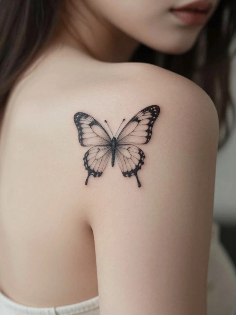 Consider how this tattoo can reflect your journey. The shoulder is an ideal placement, allowing the design to flutter gracefully across your skin. This tattoo serves as a daily reminder of your personal evolution and resilience.