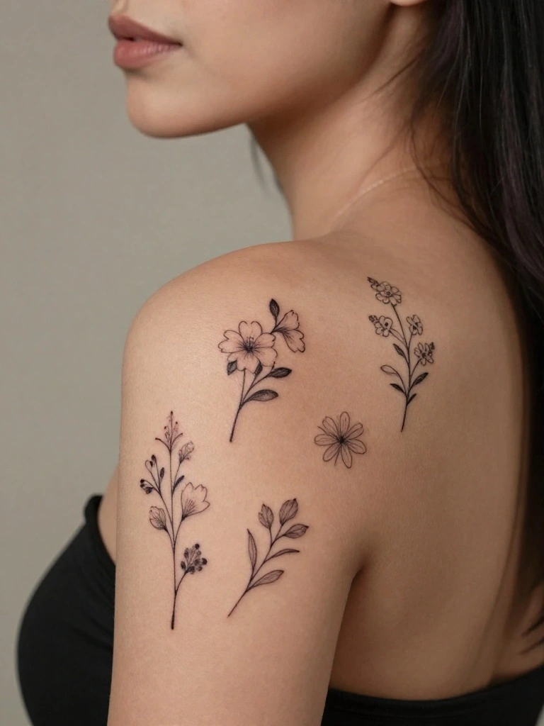 Think about how you want this tattoo to resonate with your experiences. The shoulder provides a perfect canvas for the delicate flowers to bloom beautifully, enhancing their grace. This tattoo captures the essence of beauty and renewal, making it a cherished piece of art.
