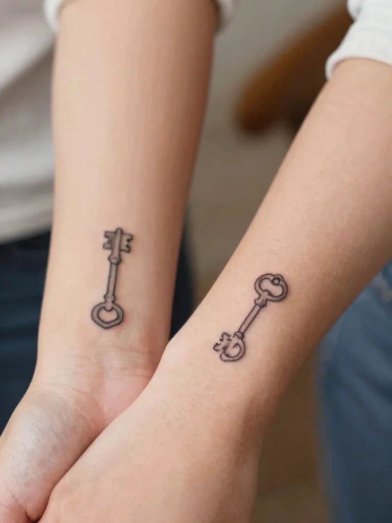 Tiny key tattoos represent unlocking potential, memories, and secrets shared between sisters. This design symbolizes the trust and bond where sisters hold the keys to each otherâs hearts, capturing the essence of your unique relationship.