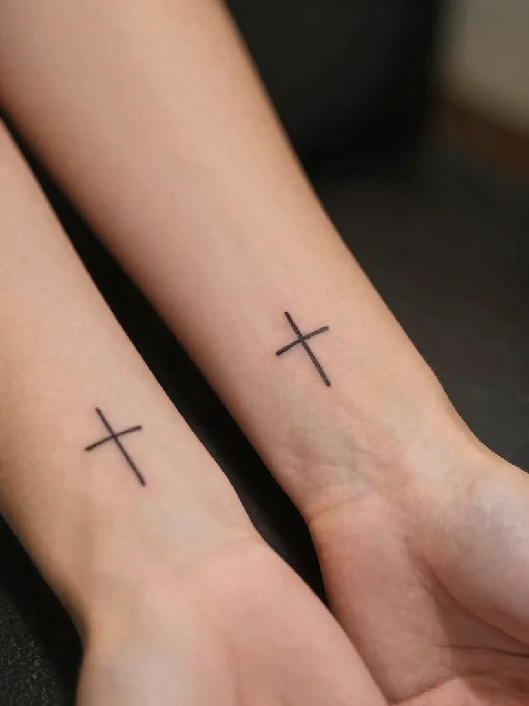 Many sisters choose cross tattoos to remind them of their shared journey, serving as a constant symbol of love and support.