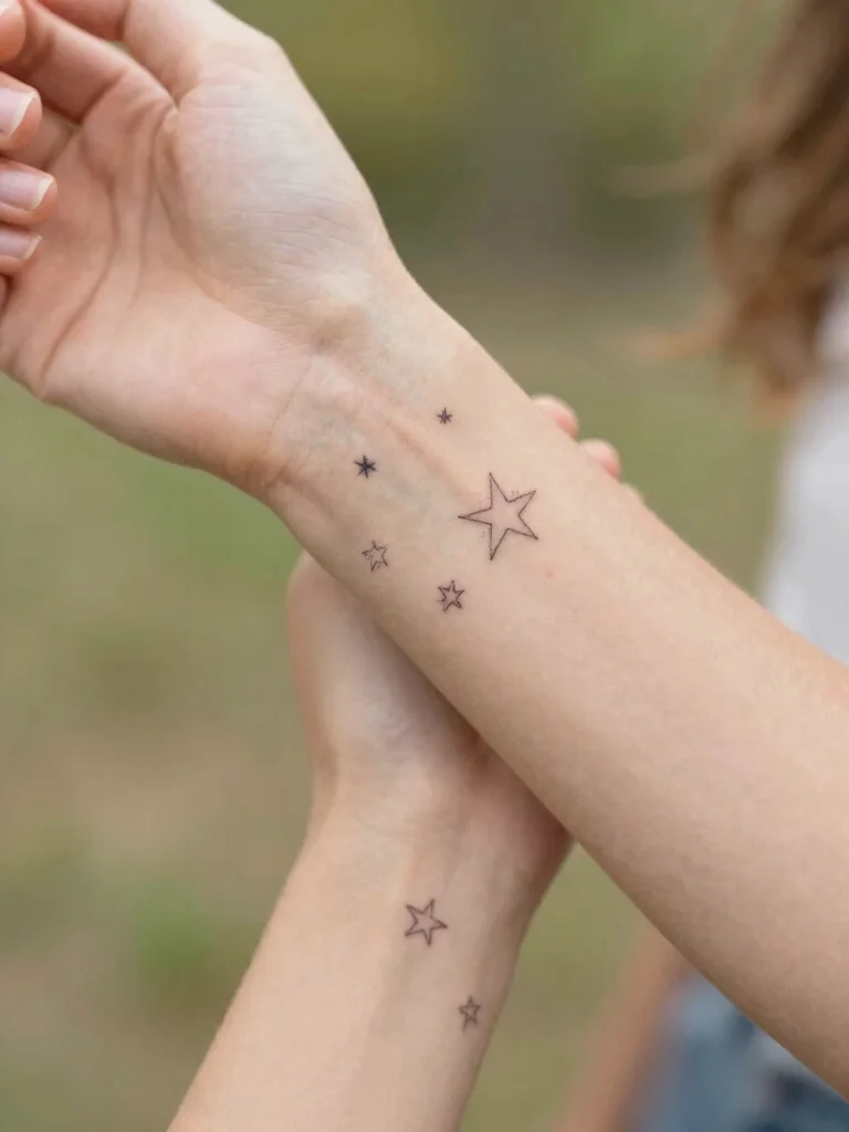 Matching stars are more than inkâtheyâre reminders that your sister is your compass. With small sister tattoos, choose sizes that fit your wrists or ankles, and let each star reflect a shared memory, turning starry ink into a lifelong roadmap for your bond.