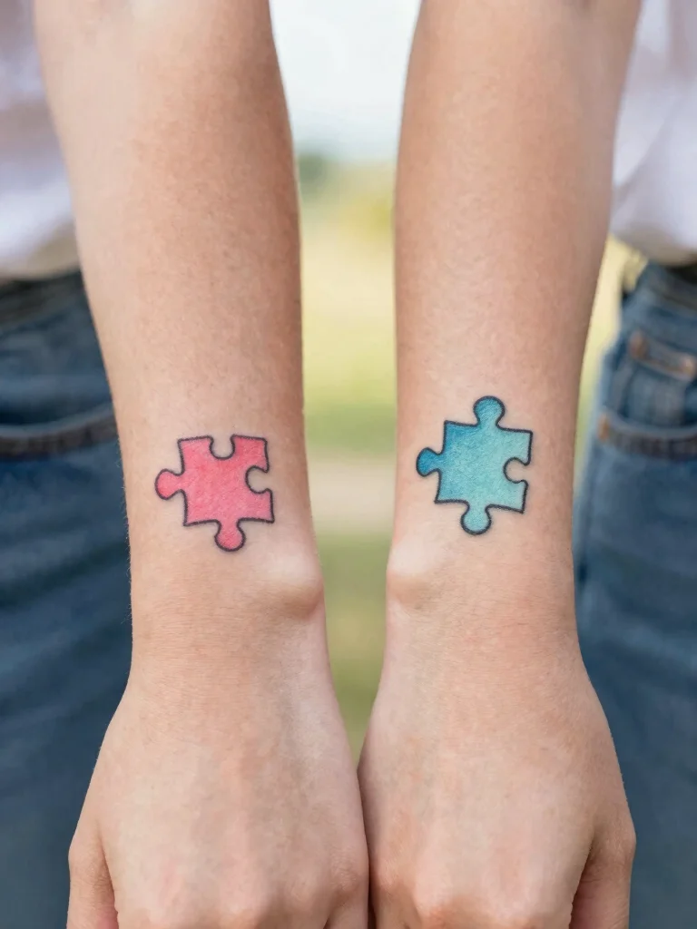 Typically small, puzzle pieces can be tattooed on wrists or ankles. Each sister can choose different colors or designs, ensuring that while they match, each piece remains uniquely personal.