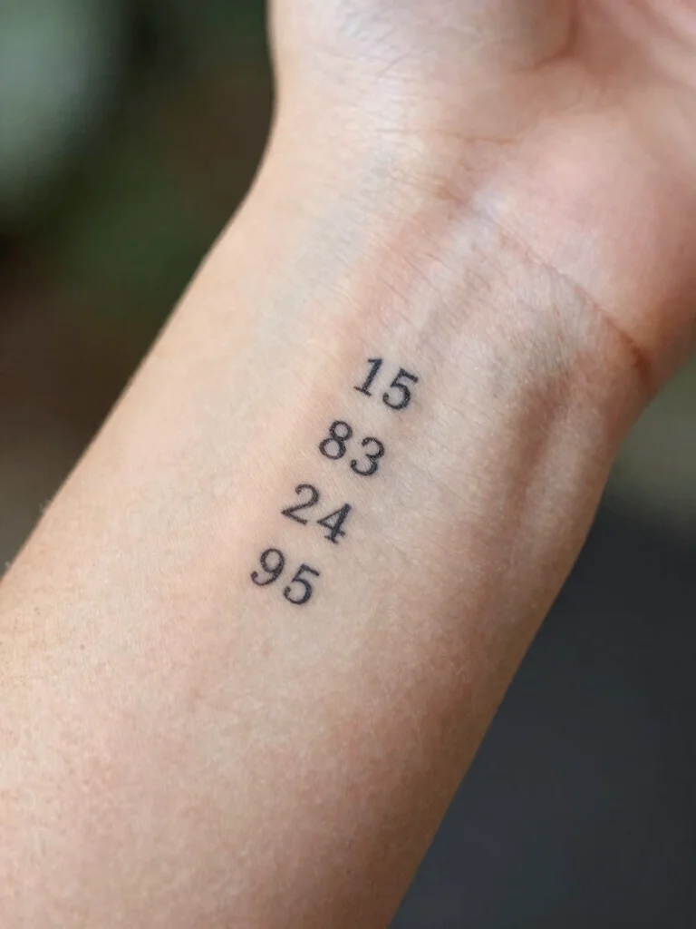Typically inked in small, neat numbers, coordinate tattoos are ideal for the wrist, forearm, or ankle. Their simplicity carries profound meaning, representing shared experiences and significant moments.
