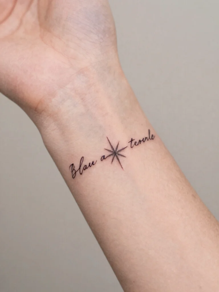 Tiny star tattoos paired with inspirational quotes create a beautiful blend of art and wisdom! These designs combine the allure of stars with meaningful phrases, adding depth to your tattoo. The stars serve as a visual reminder of powerful messages, whether motivational or personal.