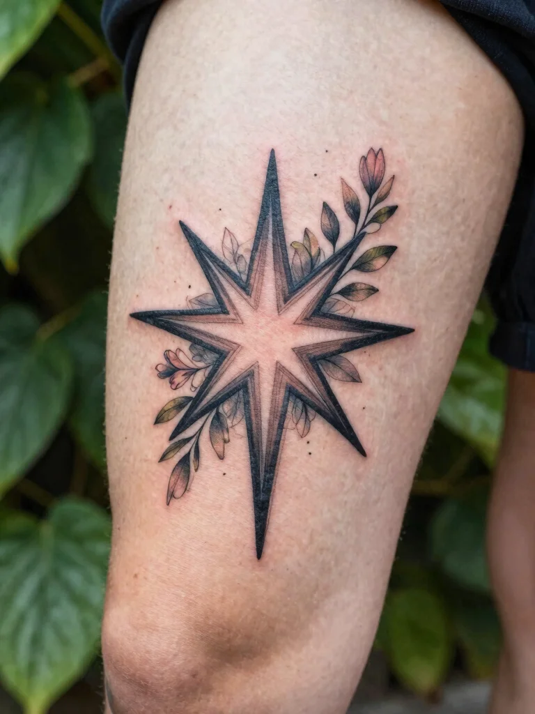 Nature-inspired star tattoos are perfect for those who find joy in both the celestial and terrestrial realms. Consider placements on your back, thigh, or side for a stunning visual effect. This design allows for creativity, showcasing your love for the natural world while connecting to the cosmos.