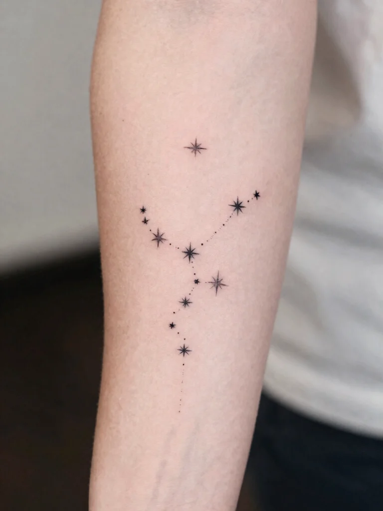 Minimalist star clusters offer a chic approach to body art! These designs group several tiny stars together, forming a constellation-like pattern that is both captivating and elegant. Their simplistic beauty makes them suitable for any occasion, whether casual or formal.