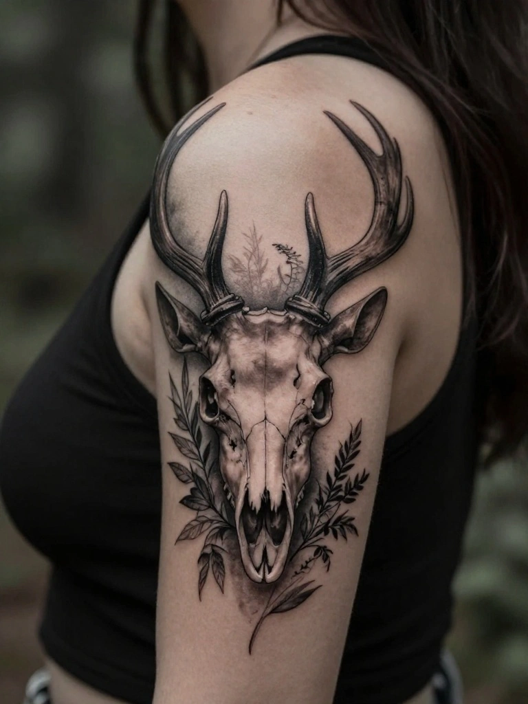 The deer skull tattoo is a striking representation of nature, symbolizing strength and survival. This edgy design resonates with those who have a deep connection to the wild and the hunting tradition.