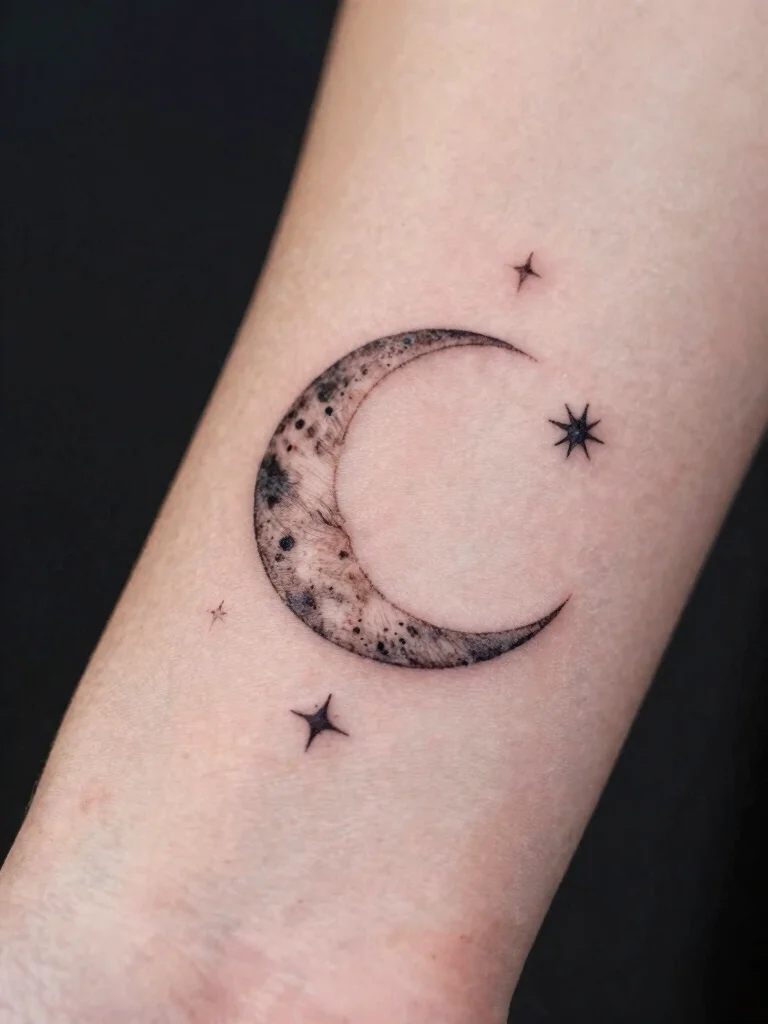 The moon and stars tattoo embodies the magic of the night sky, perfect for those enchanted by nature’s beauty. This whimsical design symbolizes guidance and inspiration, often serving as a beacon of hope.