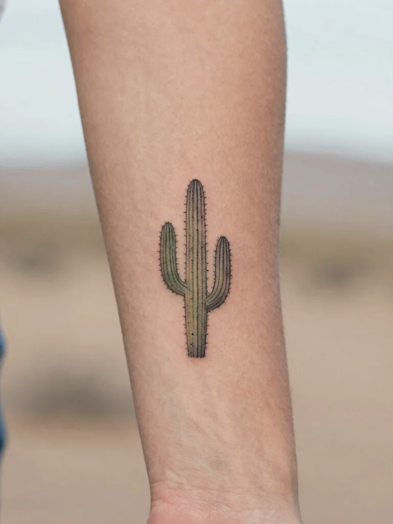 Small western tattoos prove that strength can be subtle. A minimalist cactus with clean lines fits the Wild West vibe without shouting. Try discreet spots like the forearm or fingers for a resilient, timeless look.