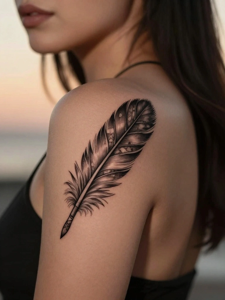 A feather with an arrow tattoo beautifully symbolizes freedom and spirituality, making it an excellent choice for adventurous spirits. The feather represents grace, while the arrow signifies determination, creating a striking balance between delicate and bold.