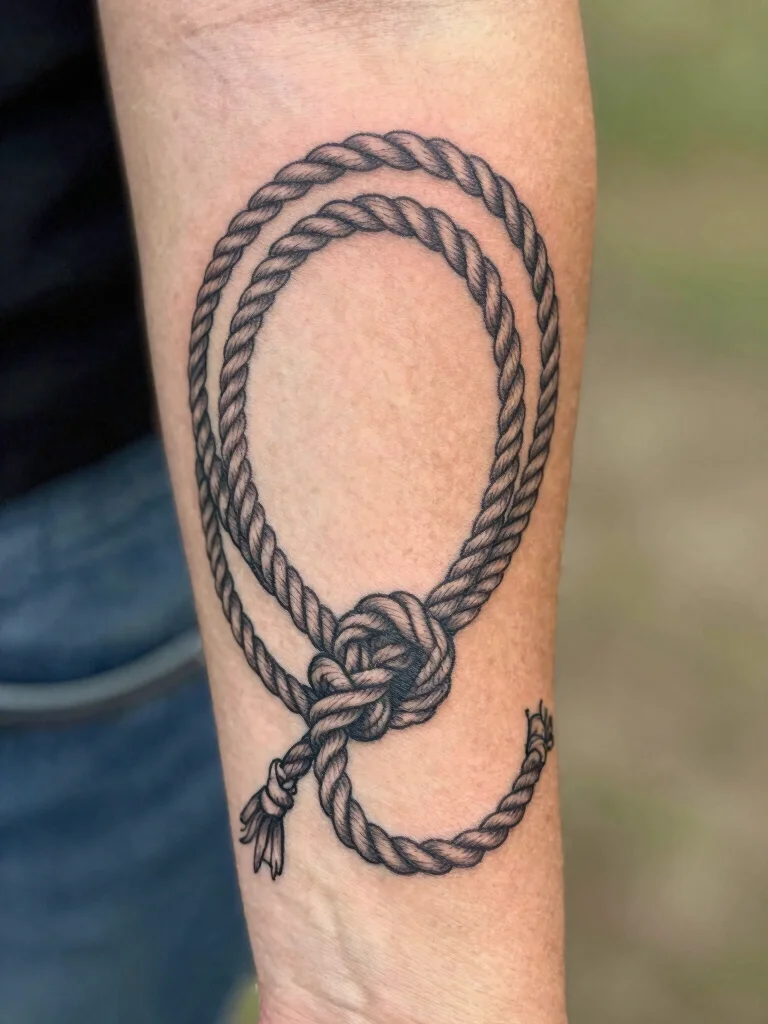 A rope or lasso tattoo embodies the cowboy spirit, signifying strength and skill. This design is adaptable and can reflect your personal taste, making it a great choice for those who appreciate the cowboy lifestyle.