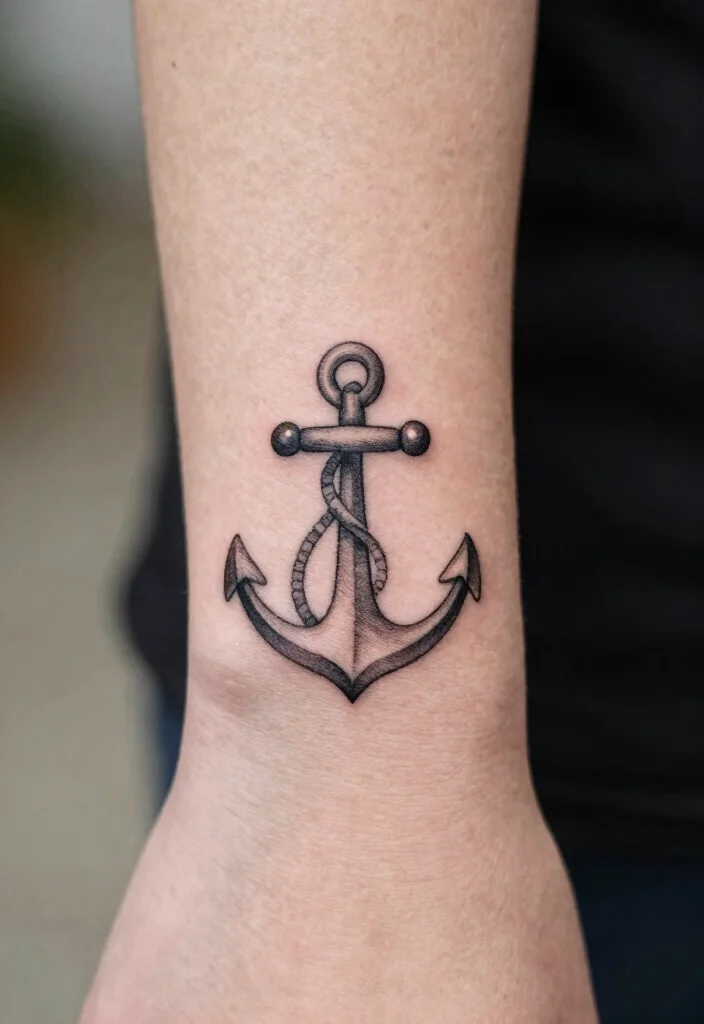 Anchor tattoos remind you to stay grounded in every moment—start small with a 1-inch anchor on your wrist for your tiny hand tattoos journey. Pro tip: pair it with rope or waves to boost meaning and detail.