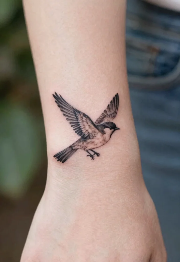 Customize your bird tattoo in various styles—flying birds suggest freedom, while perched birds evoke tranquility.