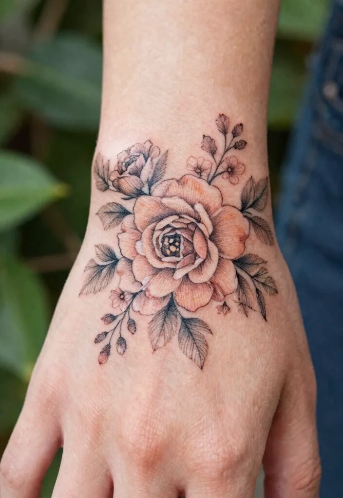 While delicate floral patterns are our top pick, others might prefer geometric shapes for a more minimalist look or watercolor tattoos for a vibrant splash of color. Consider your style and the meaning behind the tattoo as you explore your options. Each choice has its appeal, so think about what resonates with you most.